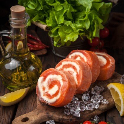 Рулеты для запекания из Горбуши с сыром и кедровым орехом